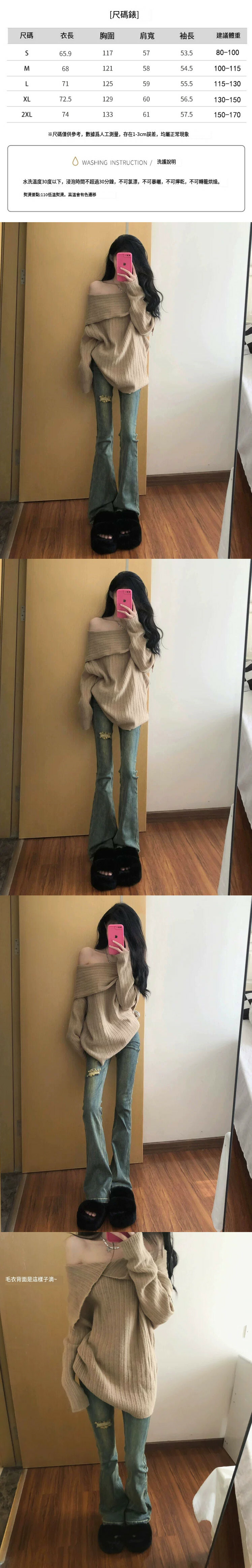 爆款一字領露肩針織毛衣(卡其色)(S/M/L/XL下單後與客服聯系發貨的尺碼)