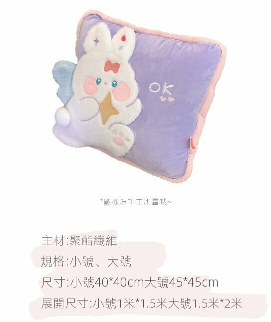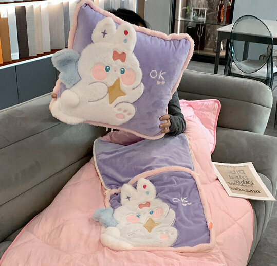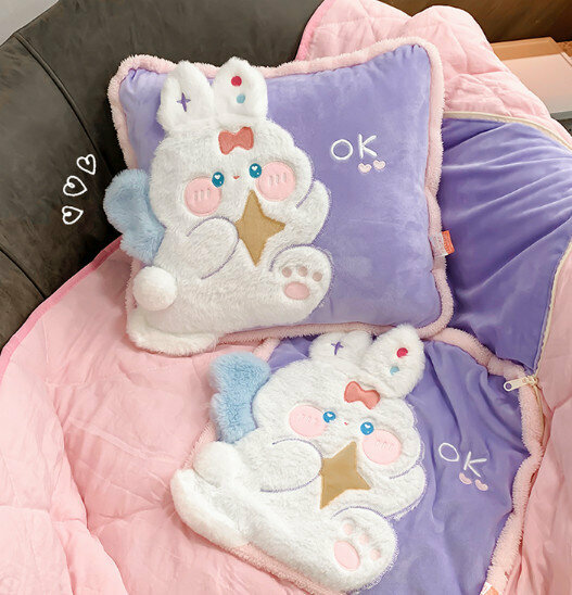 爆款辦公室午睡抱枕被子(紫色天使兔)【小號】