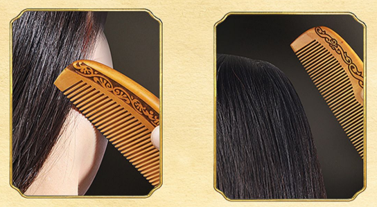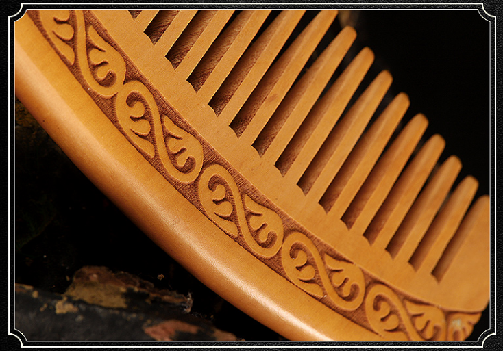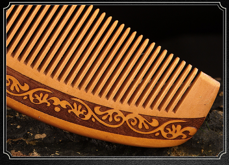 爆款老桃木雙面雕花梳子(密齒彎月)(尺寸:長150寬52mm)