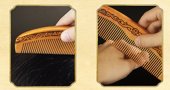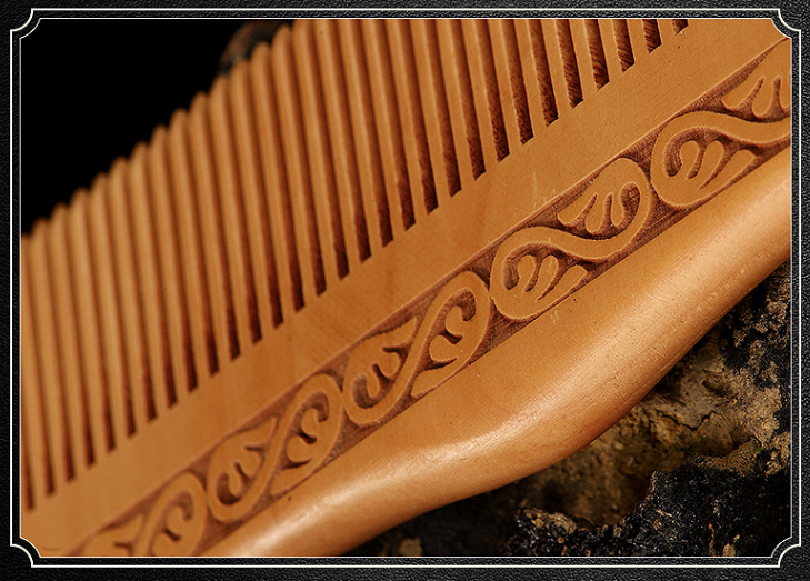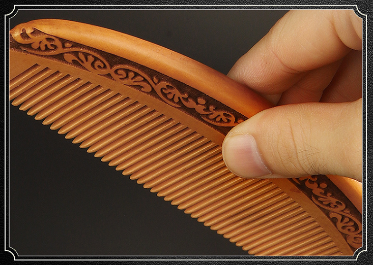 爆款老桃木雙面雕花梳子(寬齒彎月)(尺寸:長150寬52mm)