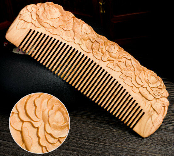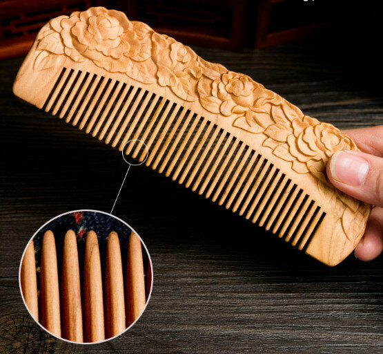 爆款桃木雕花木梳