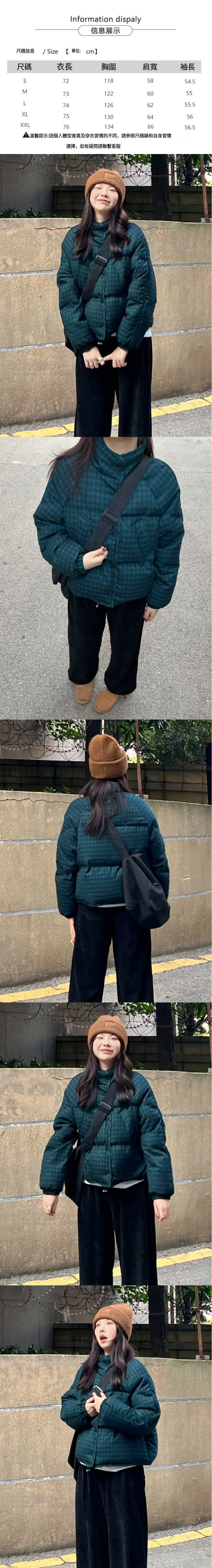 爆款格子棉服外套(綠色)(S/M/L/XL/2XL下單後與客服聯系發貨的尺碼)