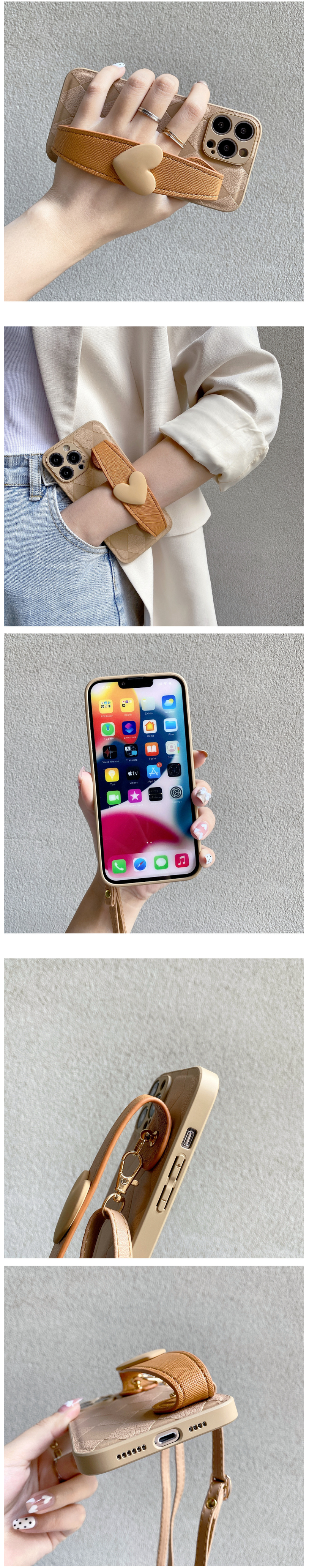 爆款格紋愛心腕帶手機殼(TY6淺藍色)(適用於蘋果-華為)(下單後聯絡客服確認手機型號)