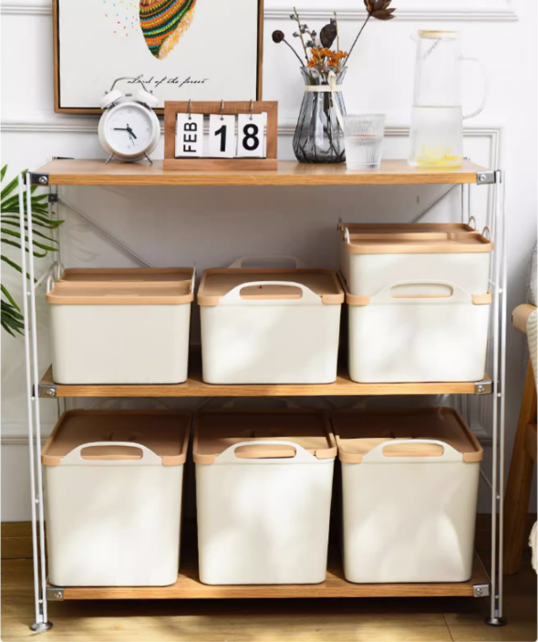 爆款帶蓋手提塑料收納箱(白色中號)(尺寸:23.5*16*15.5CM)