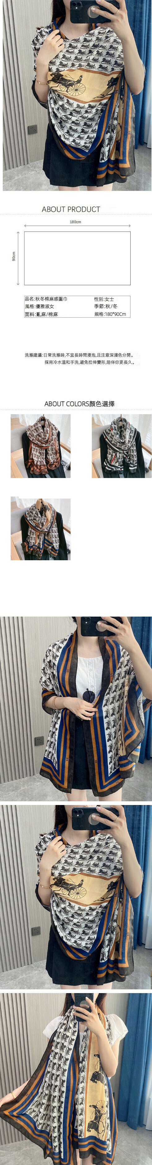 爆款印花棉麻圍巾(C-淡藍色)(尺寸:180*90cm)