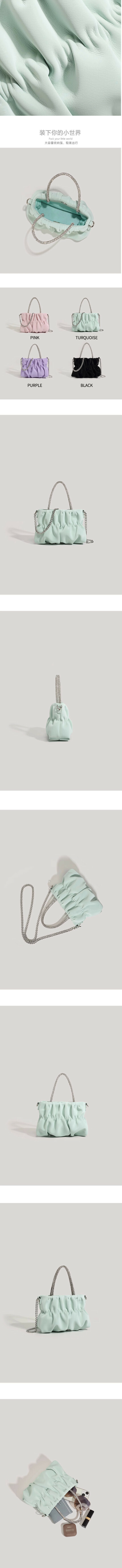 爆款pu皮鏈條褶皺手提斜挎包(紫色)
