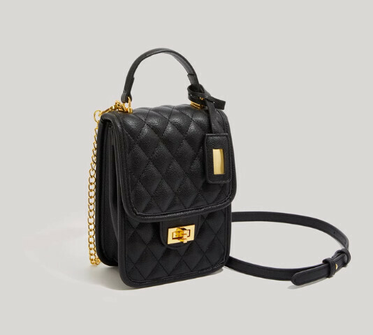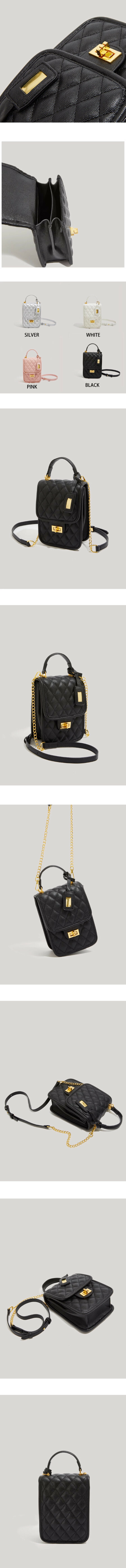 爆款pu皮菱格紋鏈條單肩斜挎包(粉色)