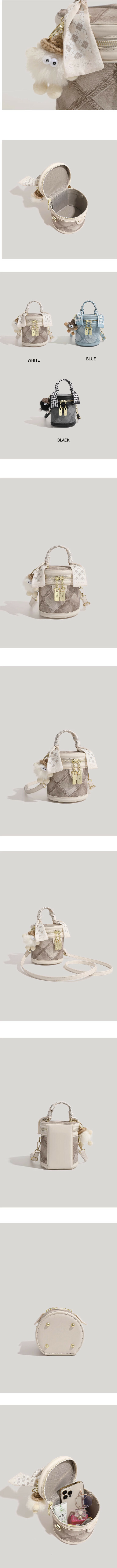 爆款pu皮單肩手提水桶斜挎包(白色)