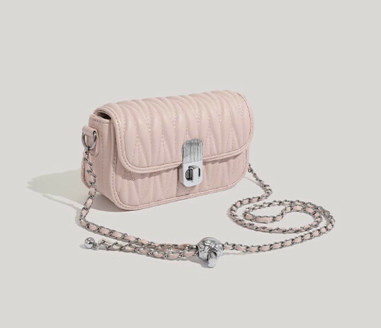 爆款pu皮小香風鏈條單肩斜挎包(粉色)