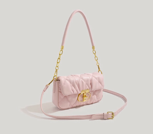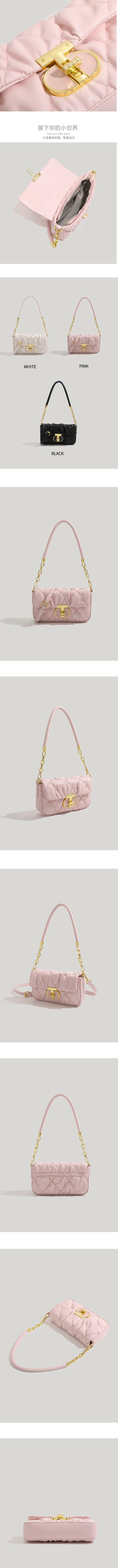爆款pu皮百搭褶皺斜挎包(米白色)