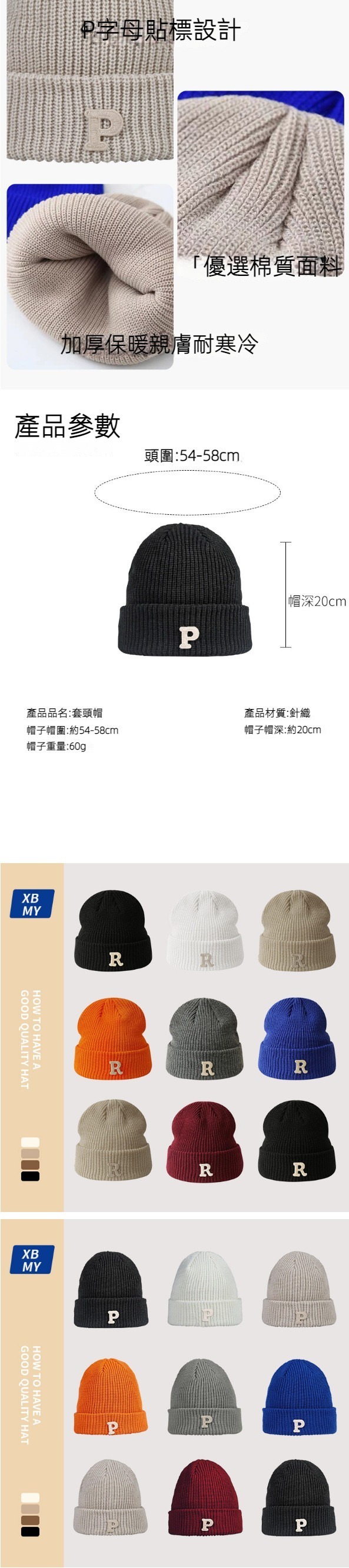 爆款套頭護耳針織帽(A-362卡其色R標)