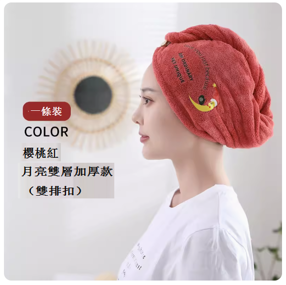 爆款速幹幹發帽(珊瑚絨【雙層加厚】櫻桃紅)