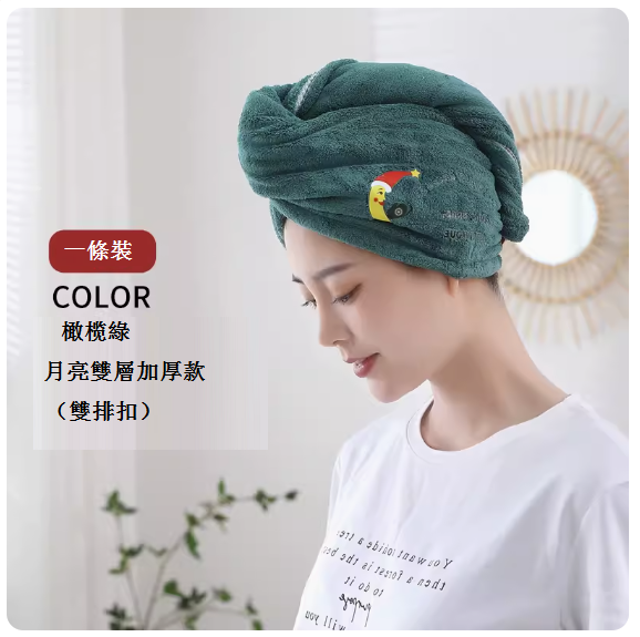爆款速幹幹發帽(珊瑚絨【雙層加厚】橄榄綠)