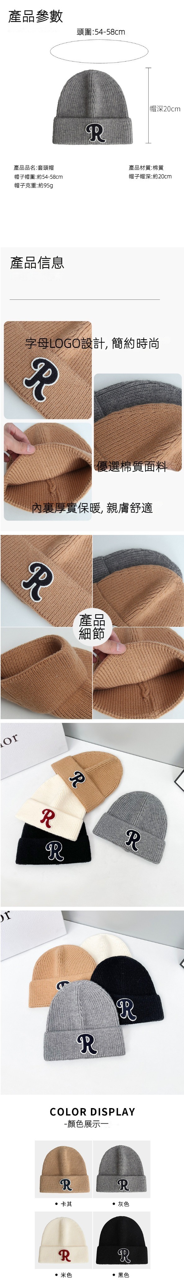 爆款R字母保暖護耳針織帽(A-383灰色)