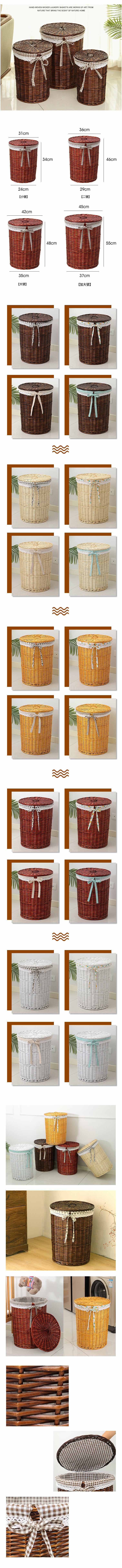 爆款藤編洗衣籃(中號(口36高46cm)紅棕色(綠底小花))