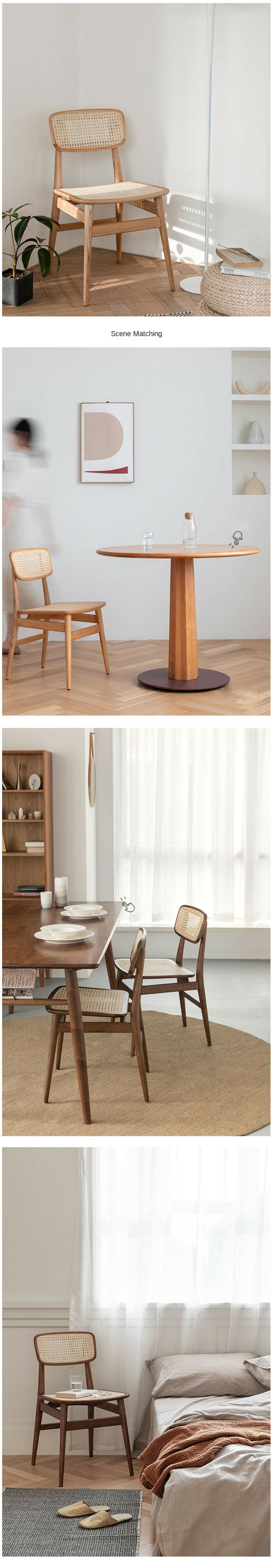 爆款藤實木餐椅餐廳靠背椅北歐桌化妝椅(橡膠木)深色