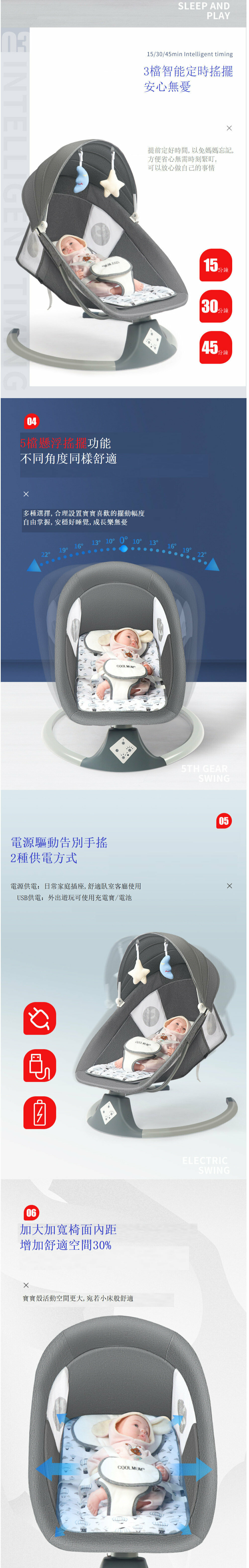 爆款可躺可睡嬰兒電動搖椅(灰色旗艦版)