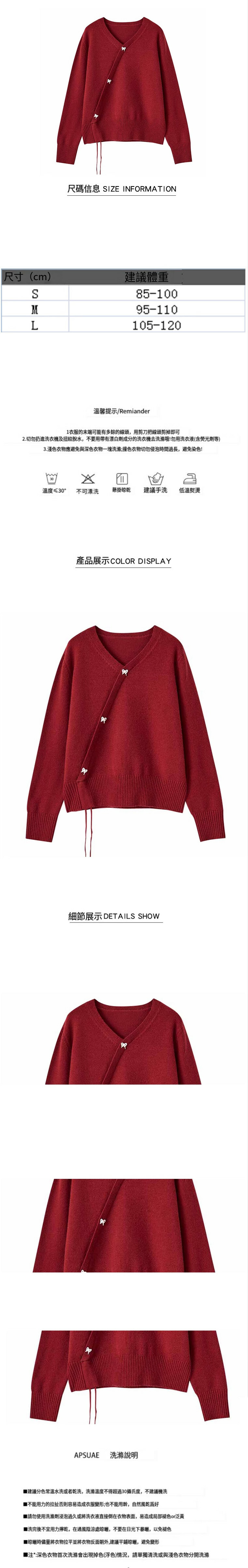 爆款紅色V領針織開衫(紅色)(S/M/L碼,下單後請與客服聯繫發貨尺碼)