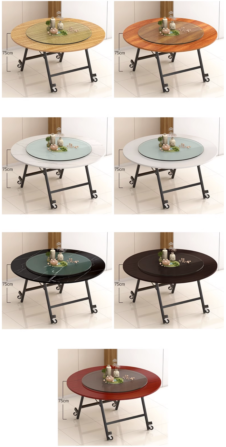 爆款可移動折疊玻璃轉盤圓形餐桌(淺胡桃色)(尺寸:1.8米圓桌+1.2米轉盤,高75CM)