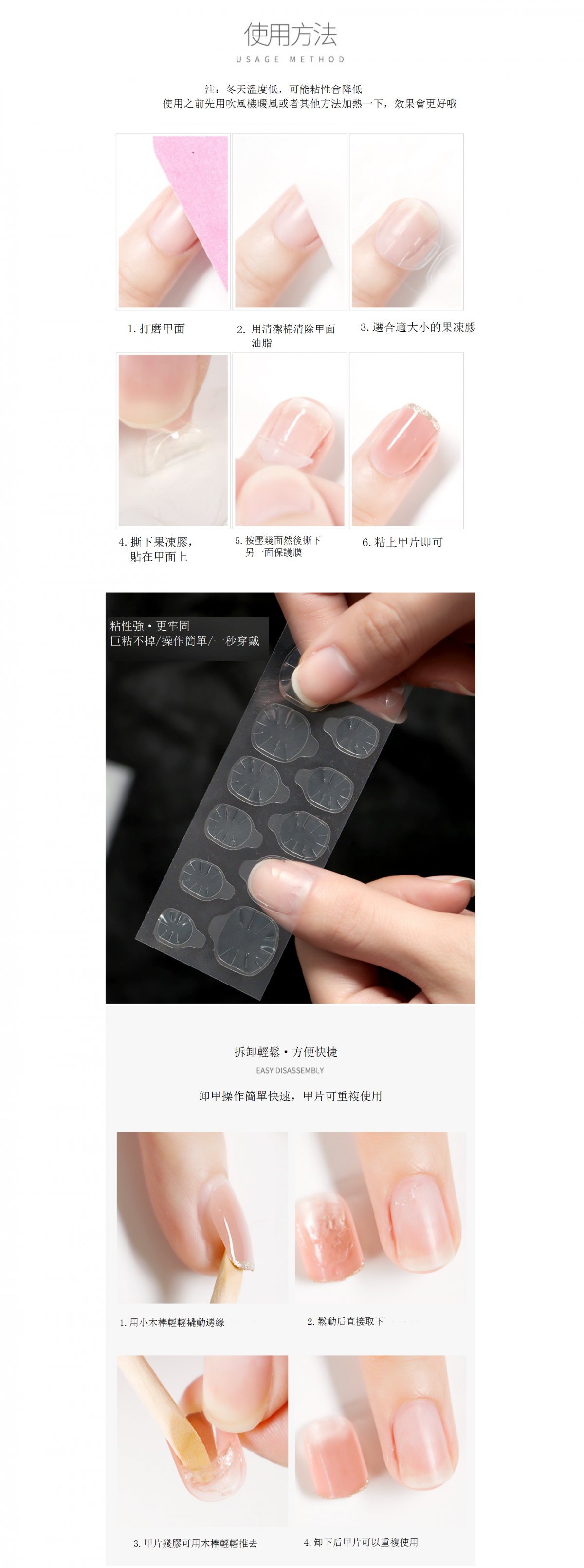 爆款可拆卸穿戴美甲 雙面果凍膠 美甲貼片 指甲貼(規格:果凍膠20張(480顆))