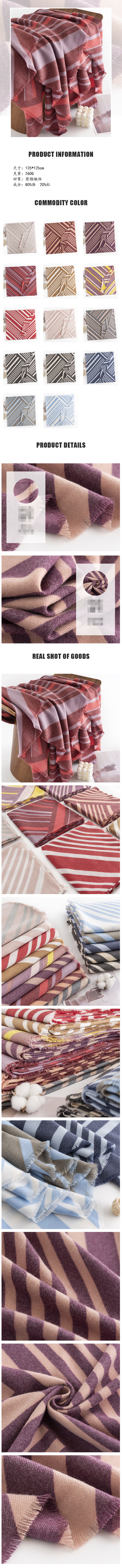 爆款復古拼色仿羊絨圍巾(規格:條紋灰)(尺寸:120*120cm)