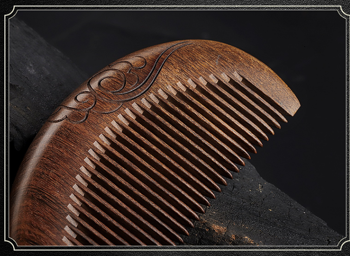 爆款復古雙面雕花金絲檀木梳(荷塘大彎月)(尺寸:長165寬55mm)