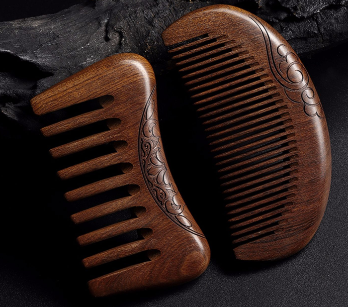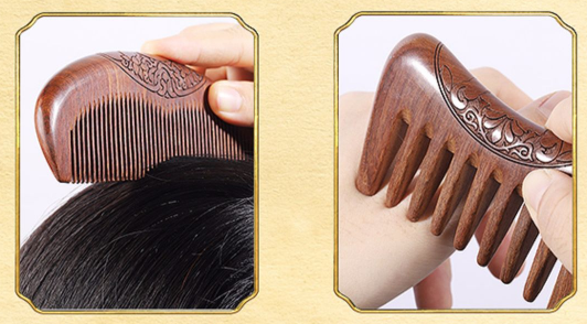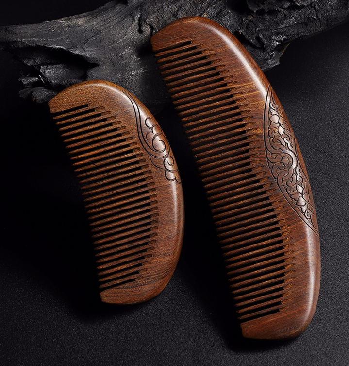 爆款復古雙面雕花金絲檀木梳(經絡按摩梳)(尺寸:長100寬55mm)