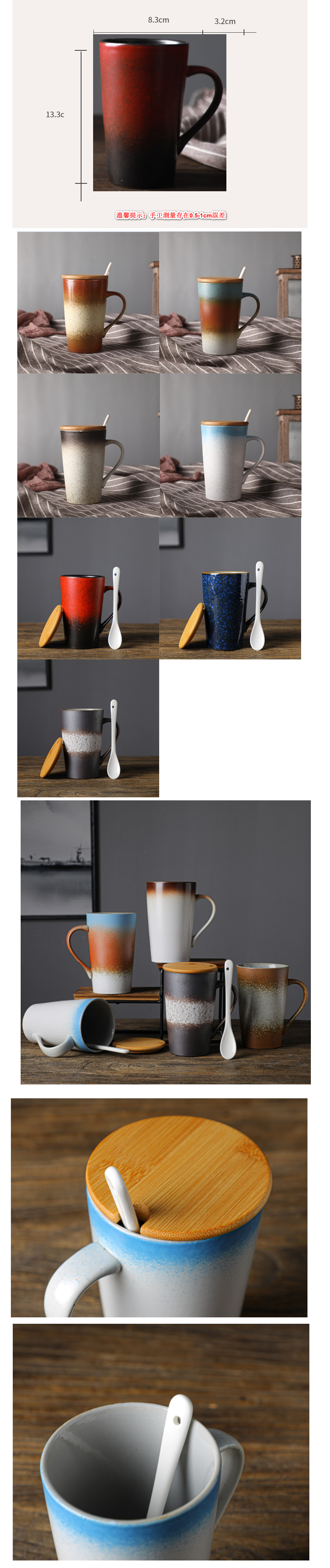 爆款復古粗陶馬克杯(含蓋含勺上藍下白,容量401-500ml)