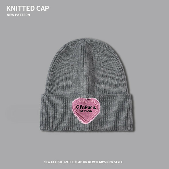 爆款复古潮爱心針織帽(A-425米色)