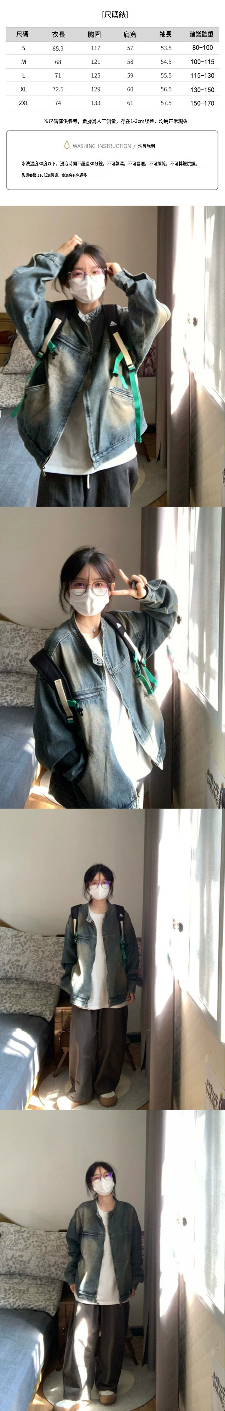 爆款復古水洗工裝牛仔外套(藍色)(S/M/L/XL/2XL下單後與客服聯系發貨的尺碼)
