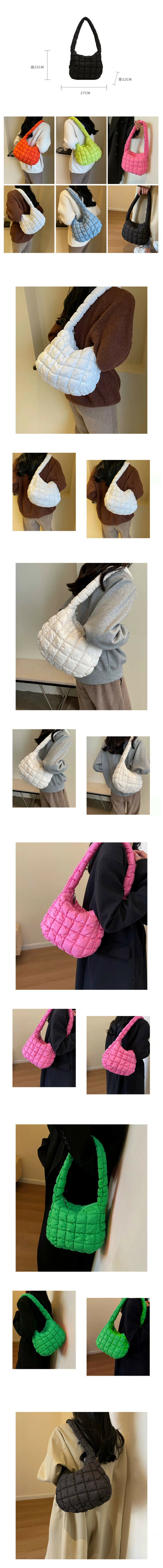 熱推菱格雲朵大容量單肩包 棉服手提包(橘色)