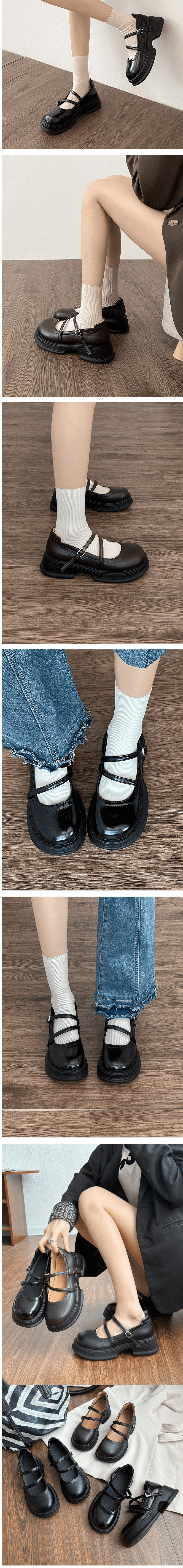 爆款圓頭厚底復古小皮鞋(黑色(啞光)/34-40碼)(下單後聯絡客服確認發貨尺碼)