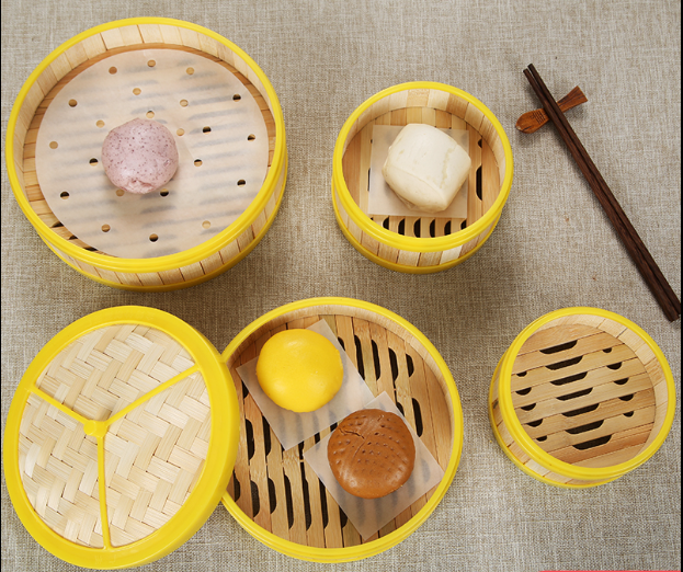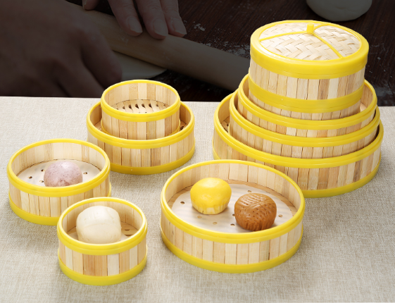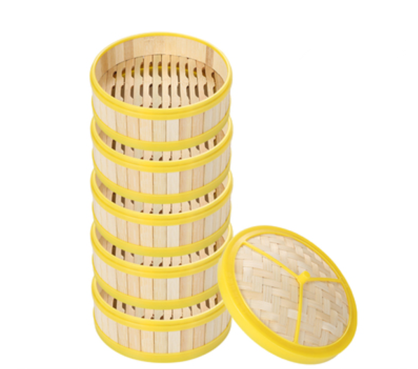爆款膠邊竹制蒸籠(五籠壹蓋)(規格:3.5寸-8寸)(下單後請聯絡客服確認發貨尺寸)