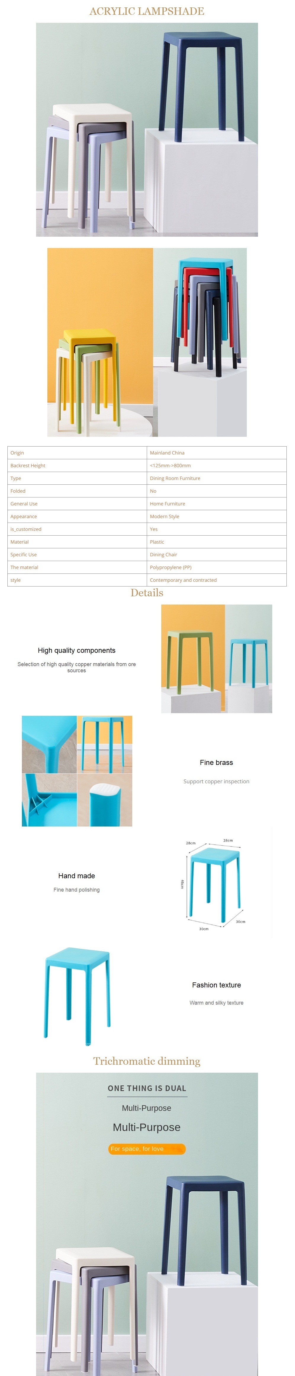 爆款膠凳餐桌高腳凳北歐方凳家用創意椅(天藍色)