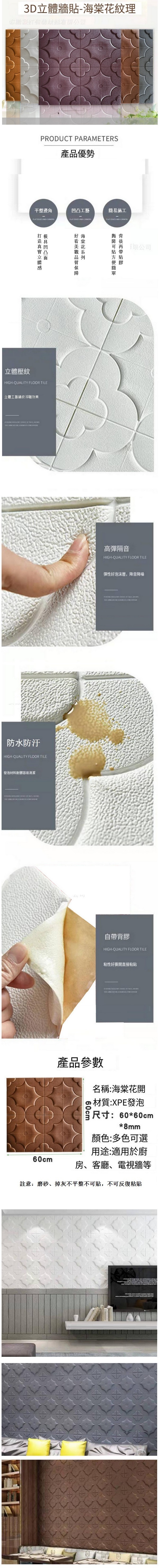 爆款自粘3d立體軟包海棠花墻貼墻紙【白色】【60cm*60cm*8mm】