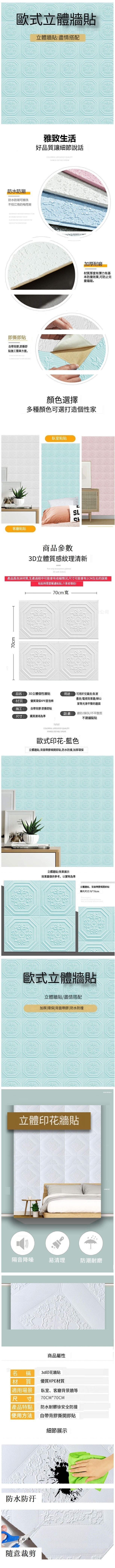爆款自粘3d立體泡沫磚防水防潮貼紙墻貼【藍色】【70*70cm*6mm】
