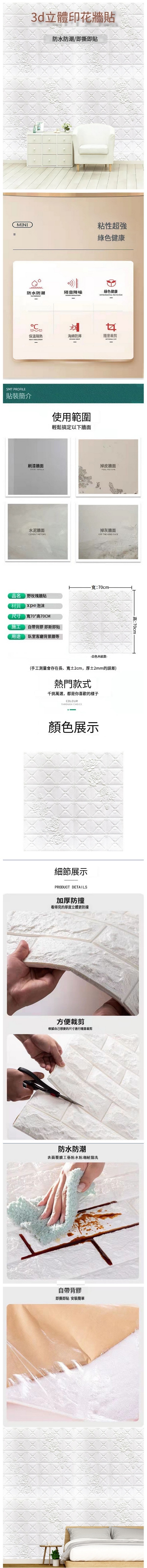 爆款自粘3D立體防水防汙強膠防潮防撞墻貼墻紙【野玫瑰-白色】【35*35CM*6MM】