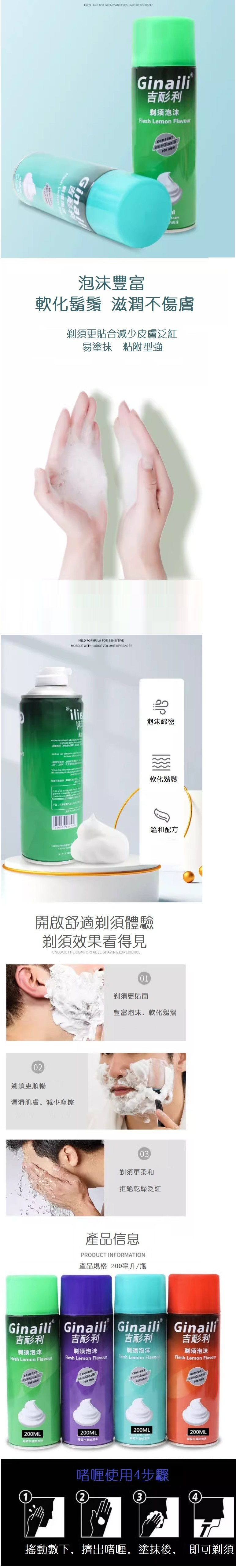 爆款剃須泡沫(3瓶共600ml)(4色隨機發)