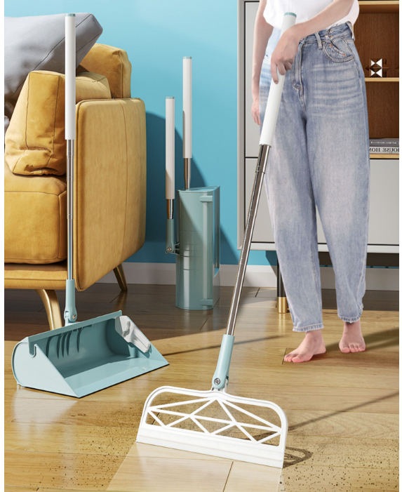 爆款矽膠掃把(可伸縮折疊魔術套掃_藍白)