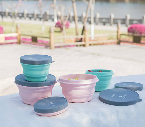 爆款矽膠便攜折疊碗(粉1000ml+綠500ml)
