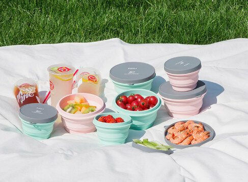 爆款矽膠便攜折疊碗(綠1000ml+粉1000ml)