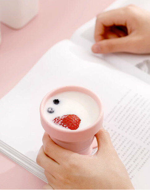 爆款矽膠可伸縮折疊旅行漱口杯(嬰兒粉-經典款230ML)