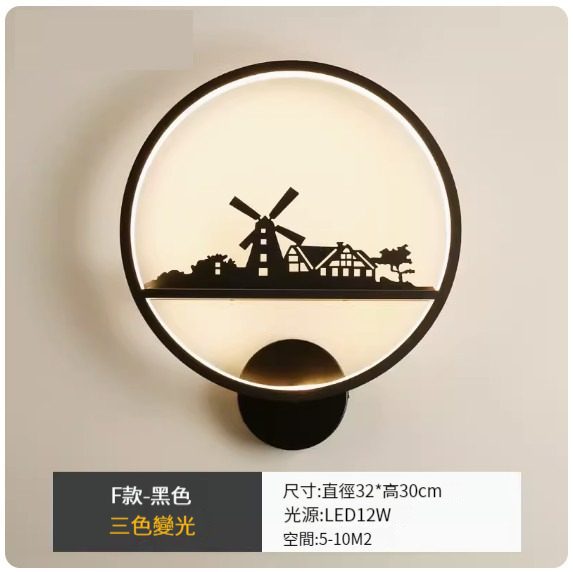 爆款簡約現代壁燈【C款-黑色--三色變光】