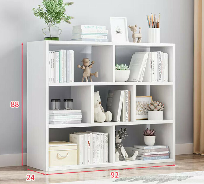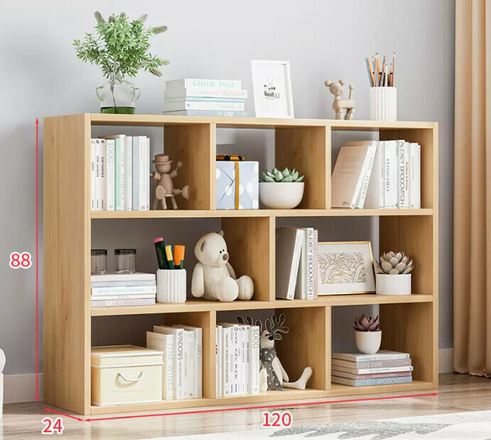 熱推簡易書架落地客廳置物架(三層八格仿實木色120*24*88cm)