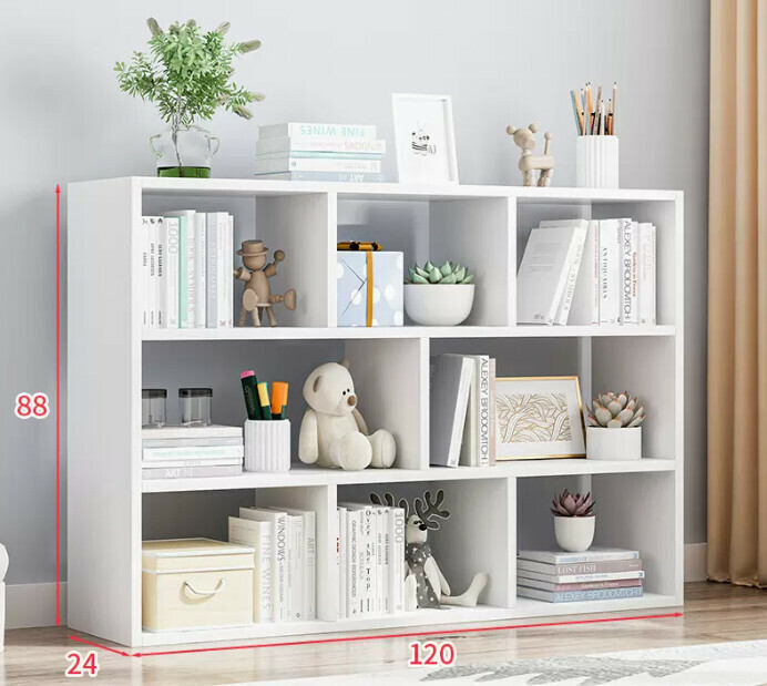 熱推簡易書架落地客廳置物架(三層七格白色92*24*88cm)