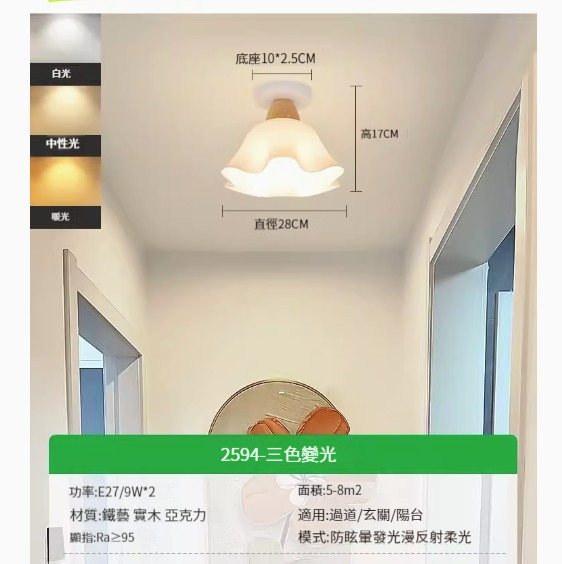 爆款簡約吸頂燈【花瓣-三色變光-9W*2】