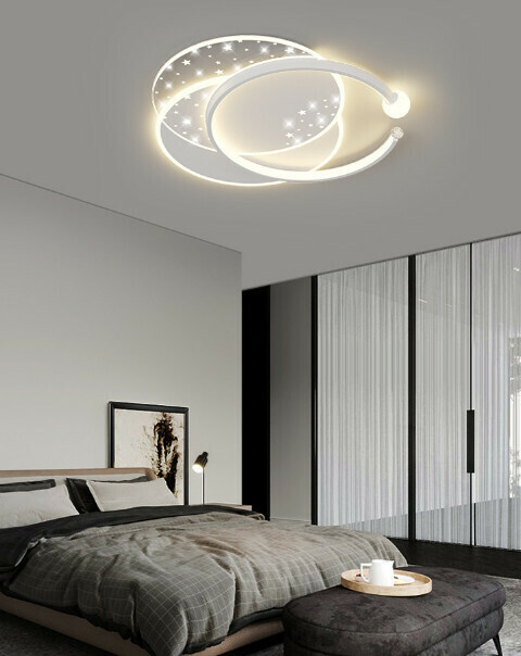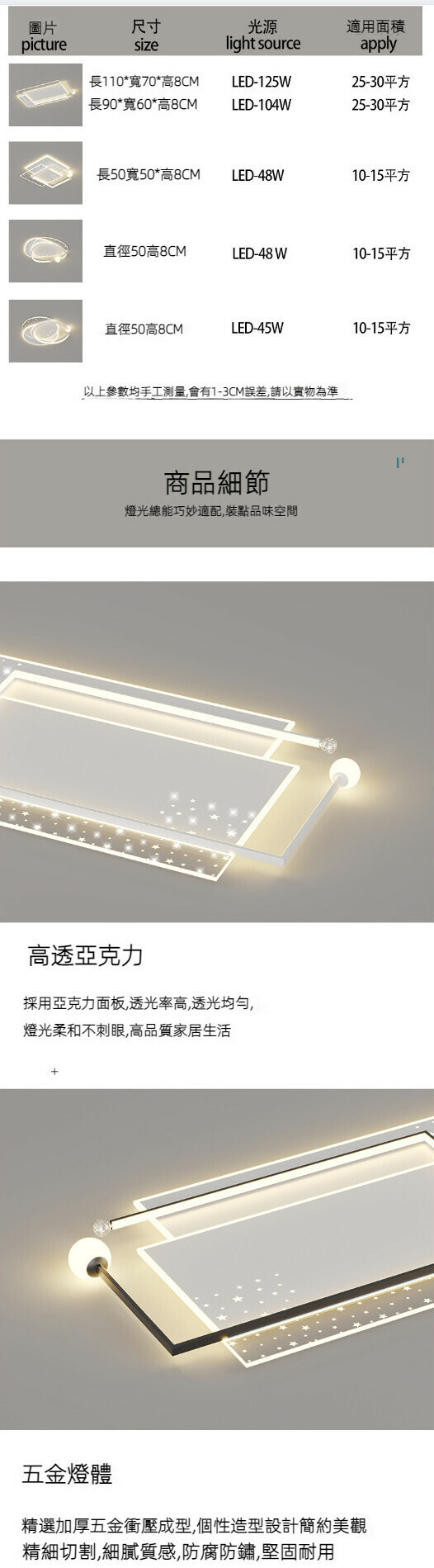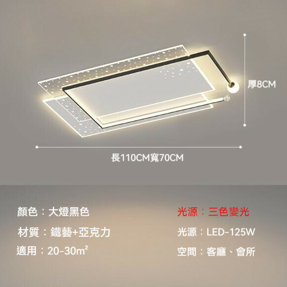 爆款簡約奶油風星空吸頂燈(黑白色長方110x70cm)【LED三色變光】
