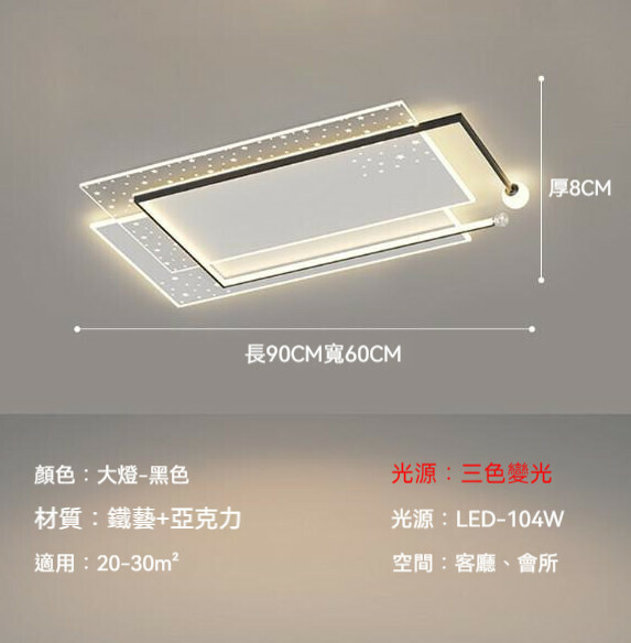爆款簡約奶油風星空吸頂燈(黑白色長方90x60cm)【LED三色變光】