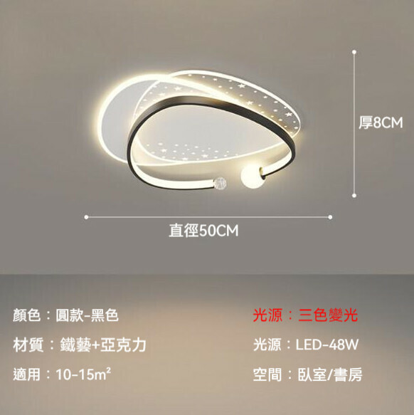 爆款簡約奶油風星空吸頂燈(黑白色三角50cm)【LED三色變光】