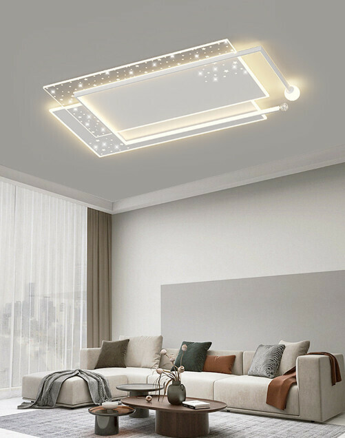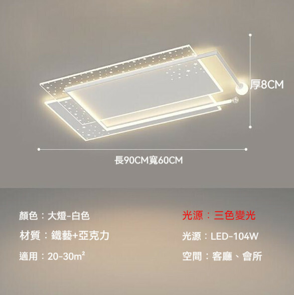 爆款簡約奶油風星空吸頂燈(白色長方90x60cm)【LED三色變光】